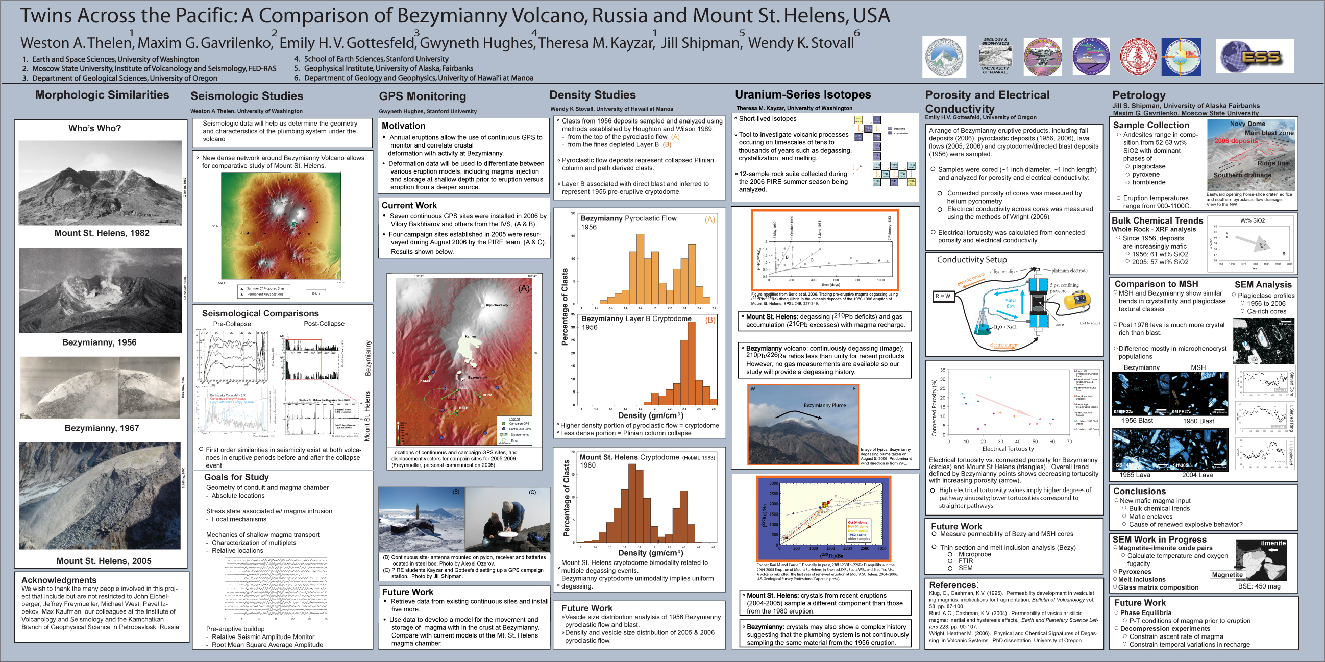 Emily Gottesfeld (University of Oregon) examined electrical tortuosity and connected porosity of samples from a variety of samples from Bezymianny.