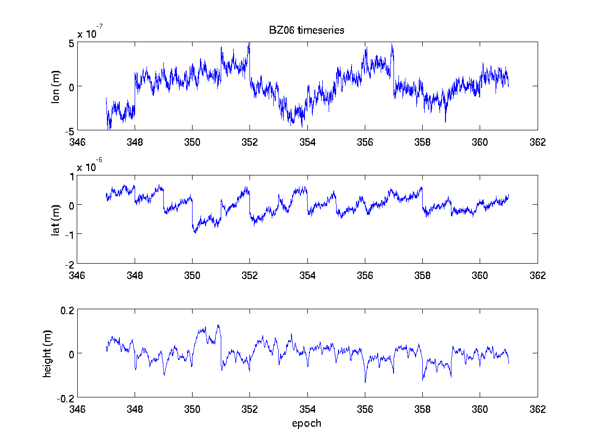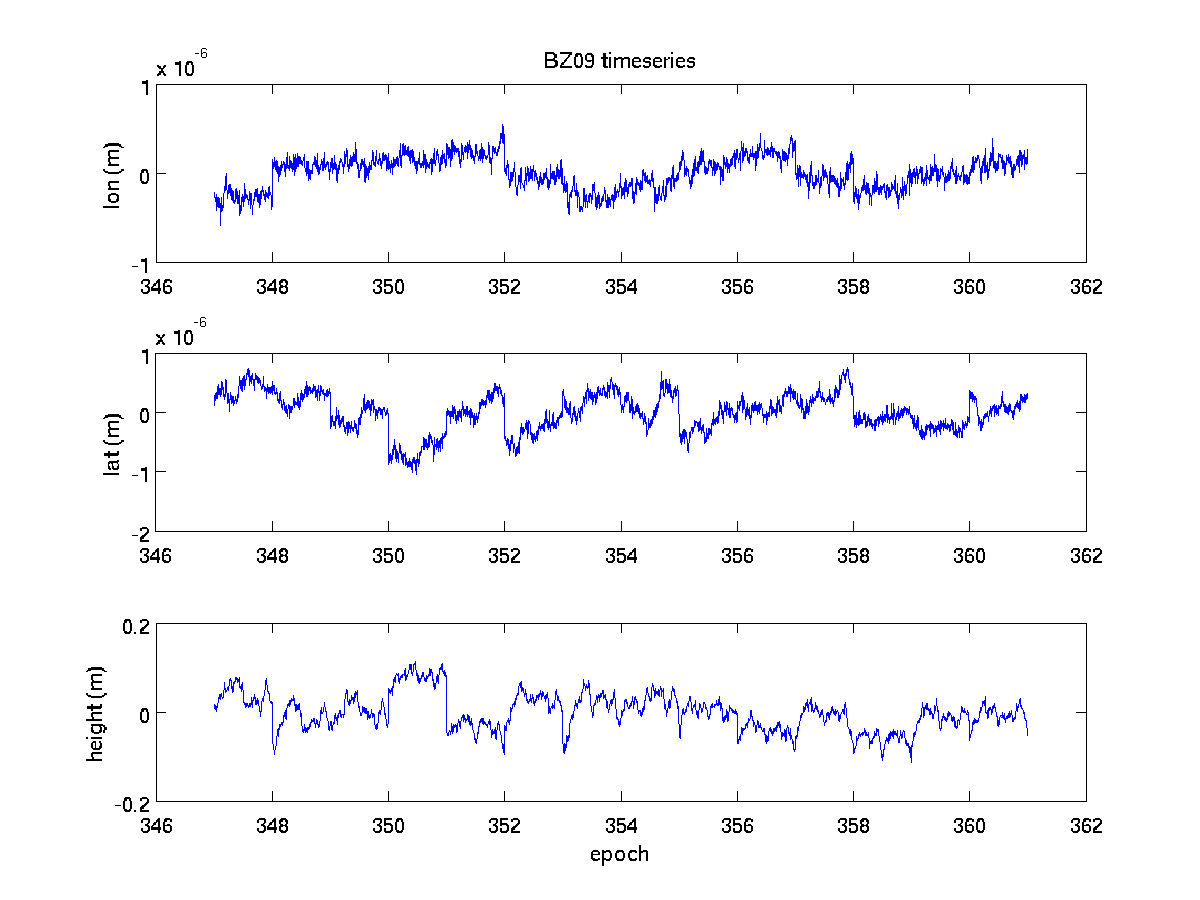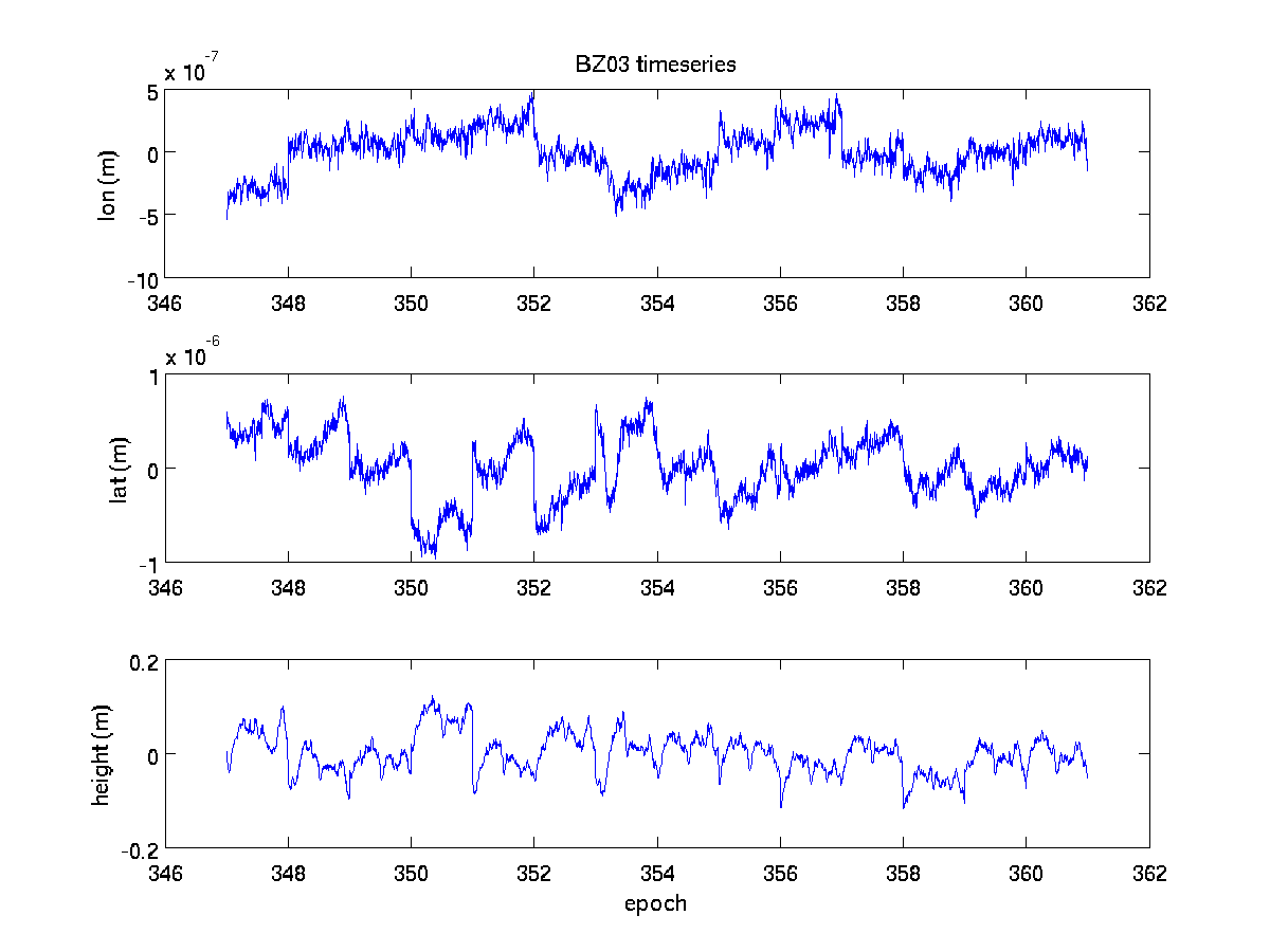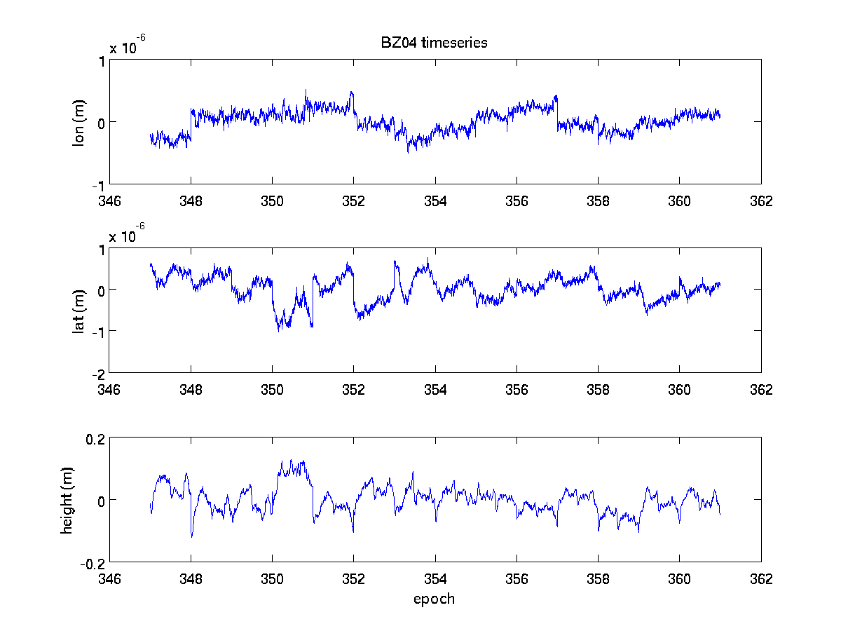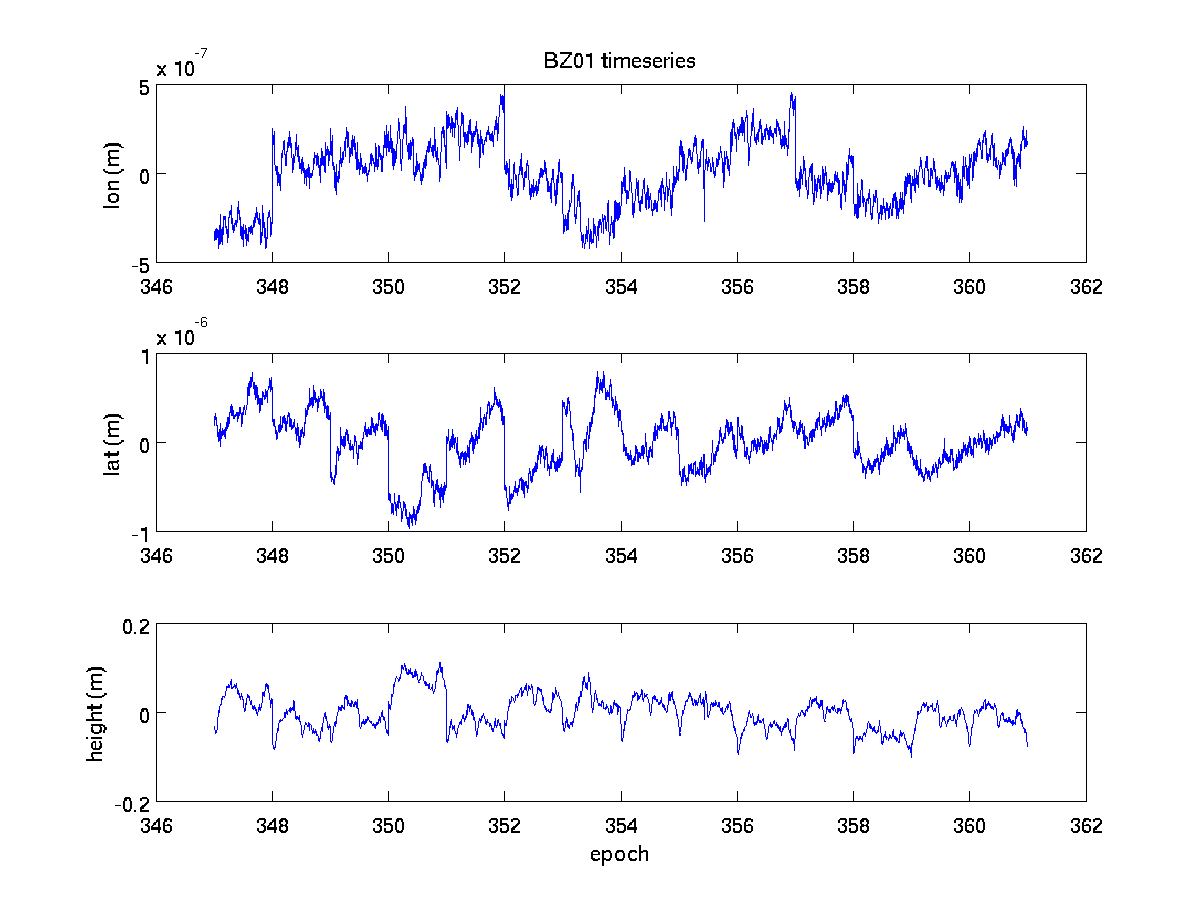 The goal of this exercise is to automate the extraction of 5 min GPS positions from a given database for various GPS stations. Minor changes in a previously used Matlab script should allow us to automatically plot these data and save the figures.