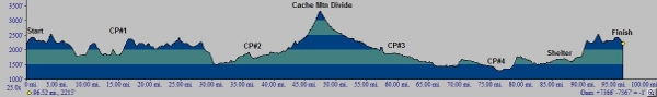 Food and Drink: ~11 liters of Gatorade (yuck!) + Coke, coffee, hot chocolate etc. at check points, 7 Cliff Bars, 7 GUs, 1 Snack Lock + Aid station food.